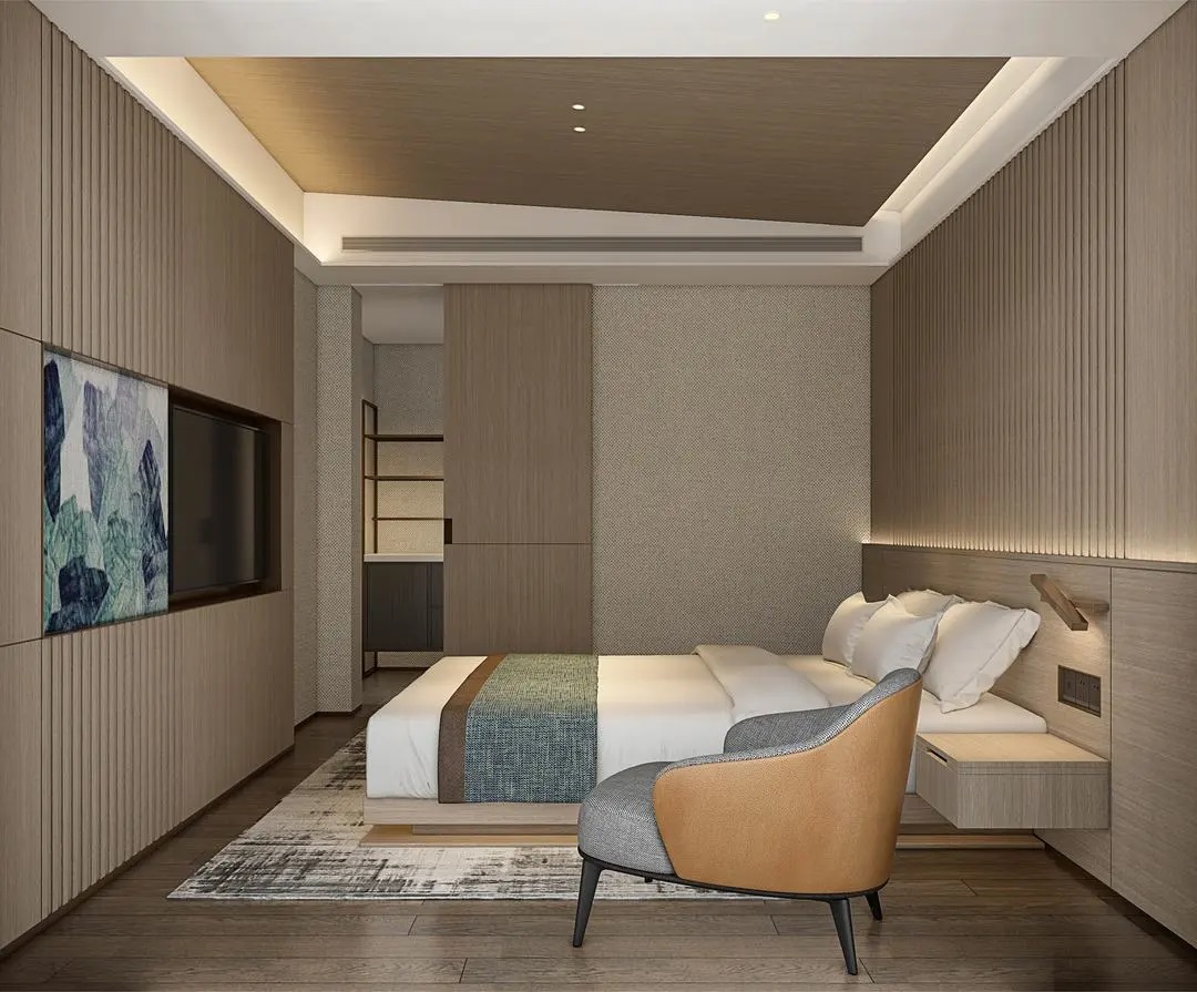 室內裝飾精致典雅,搭配以溫馨的燈光,仿佛一片靜謐的港灣。數智化客房,盡享方便快捷。每一處細節,皆為您量身打造。在這里,您將忘卻塵世喧囂,重拾內心寧靜。