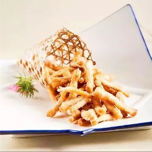 做法:鮮茶樹(shù)菇洗凈晾干,加入玉米淀粉攪拌均勻,起鍋倒入色拉油,茶樹(shù)菇炸至金黃撈出,另起一鍋放入咸蛋黃翻炒,最后加入炸好的茶樹(shù)菇翻炒調(diào)味即成。
