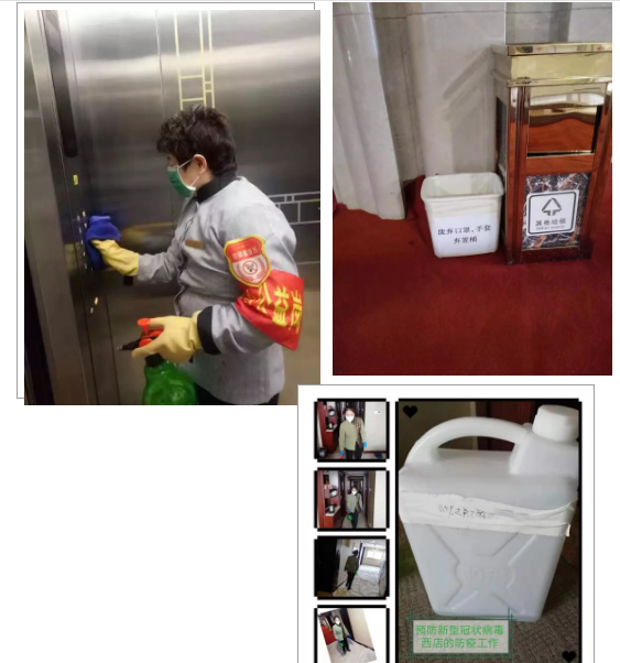 按照廳防控辦對防控疫情的統一安排部署,飯店及時制定、報備《應對疫情工作值班表》,加強應急值守,建立疫情信息報送制度,每天對全體員工身體健康狀況進行統計,匯總后向廳防控辦上報。同時對有無與疫區緊密接觸人員情況全面摸排,按要求填報《省財政廳涉省外行程或與湖北人員接觸情況統計匯總表》,確保人員安全。統計“四返”人員準確信息,已經返工的必須按要求隔離14天,未返回的等待通知并做好自我防護。對抗疫防控一線值守人員采取封閉式管理,從源頭上阻斷疫情傳播。值班人員嚴格落實各自職責。保衛部、前臺對進入車輛及人員進行詳細詢問登記,檢測體溫,嚴格消毒。客務部、餐飲部對公共接待區域定時噴灑消毒水,尤其是對電梯按鍵、門把手等擦拭消毒,避免交叉感染。