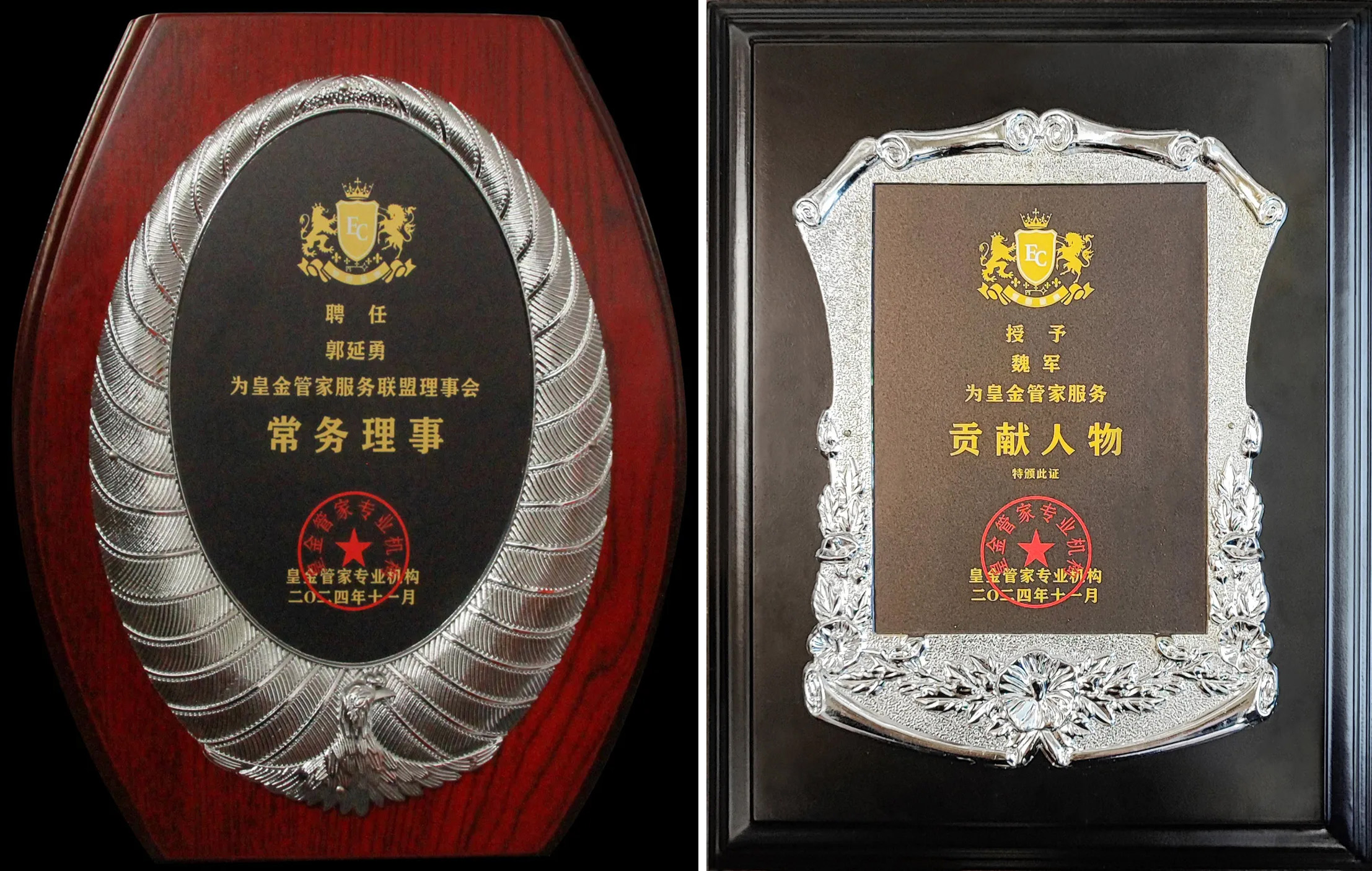 年會為長期支持黃金管家服務機構發展的個人頒發了貢獻人物獎,為部分地區執行官頒發理事牌證,為企業頒發“2024皇金管家服務商旅居停口碑榜”獎牌。