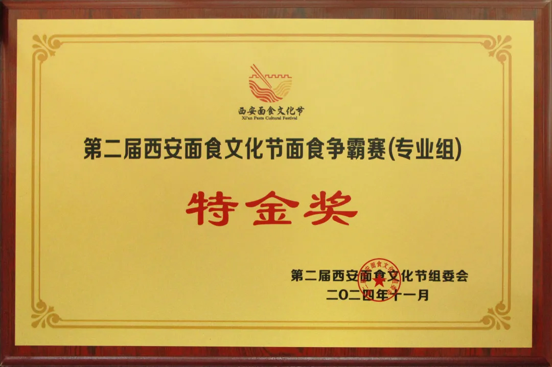 三秦大地,陜面飄香。2024年11月22日,第二屆西安面食文化節在西安市蓮湖區大唐西市金市廣場隆重開幕。11月23日,作為第二屆西安面食文化節系列活動之一的西安面食爭霸賽火熱舉辦,西北飯店的長安臊子面憑借其獨特制作工藝和地道口味,一舉奪得長安面·道千年第二屆西安面食爭霸賽(專業組)的特金獎,成為本次文化節的一大亮點。