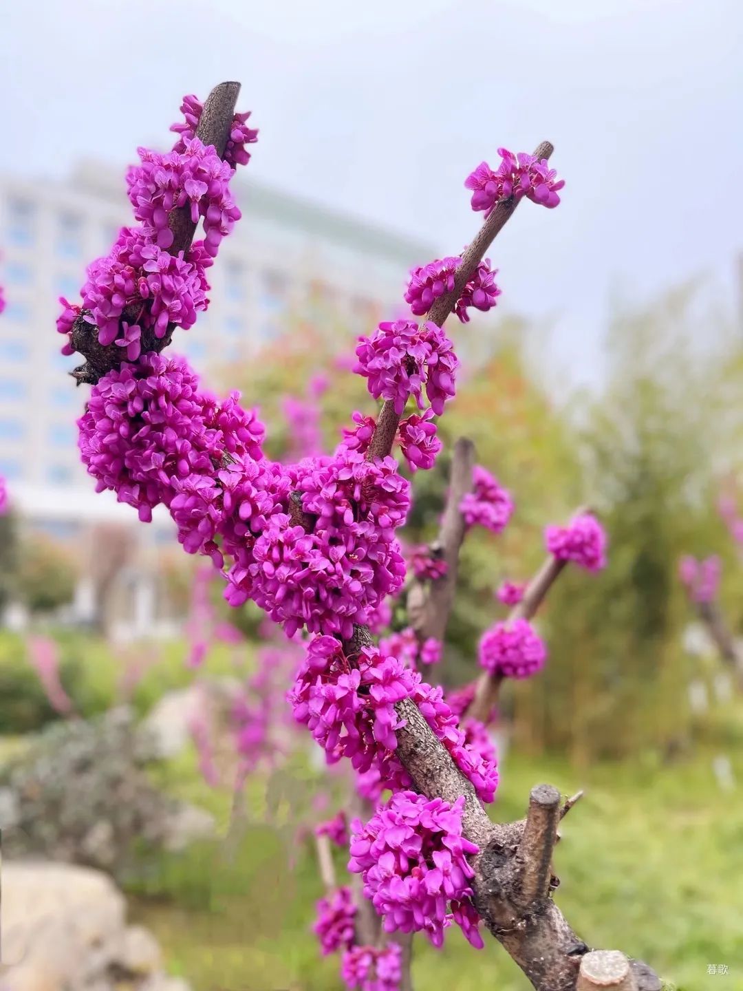 院子里芳草萋萋,此時櫻花、紫荊花開得絢爛無比,密匝匝的花朵壓得枝干都彎了下來,空氣中到處彌漫著迷人的芬芳?!胞惿?,快來聽呀,有花開的聲音!”